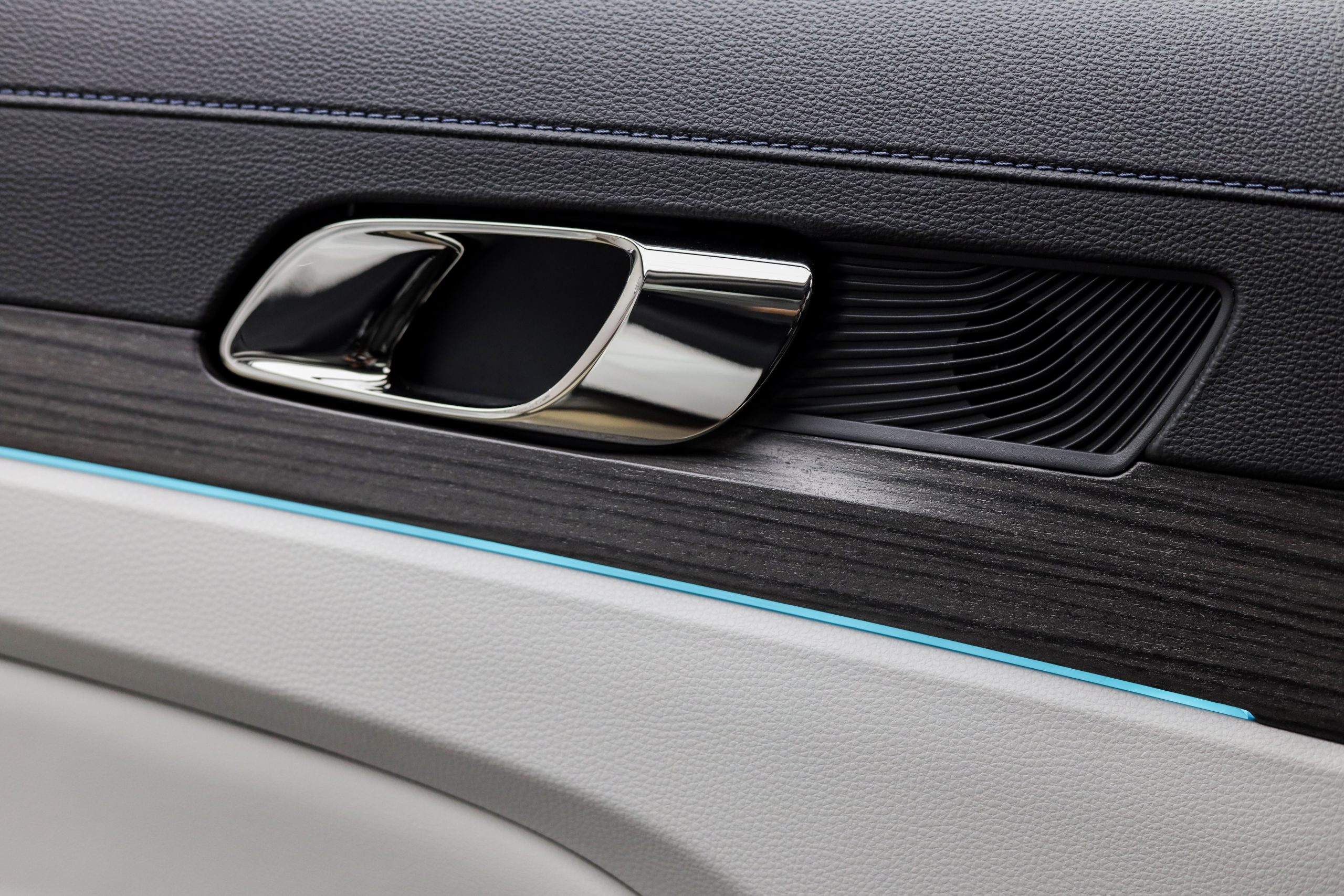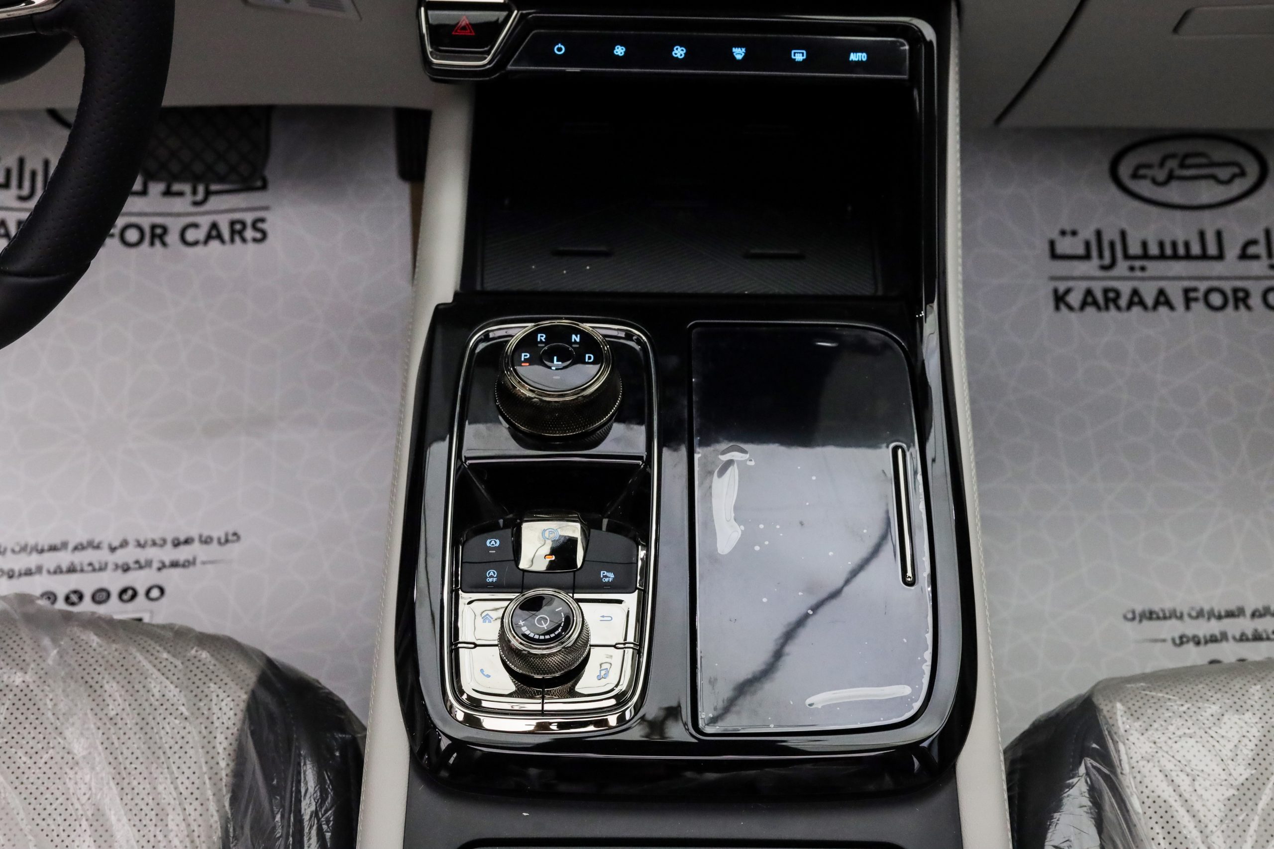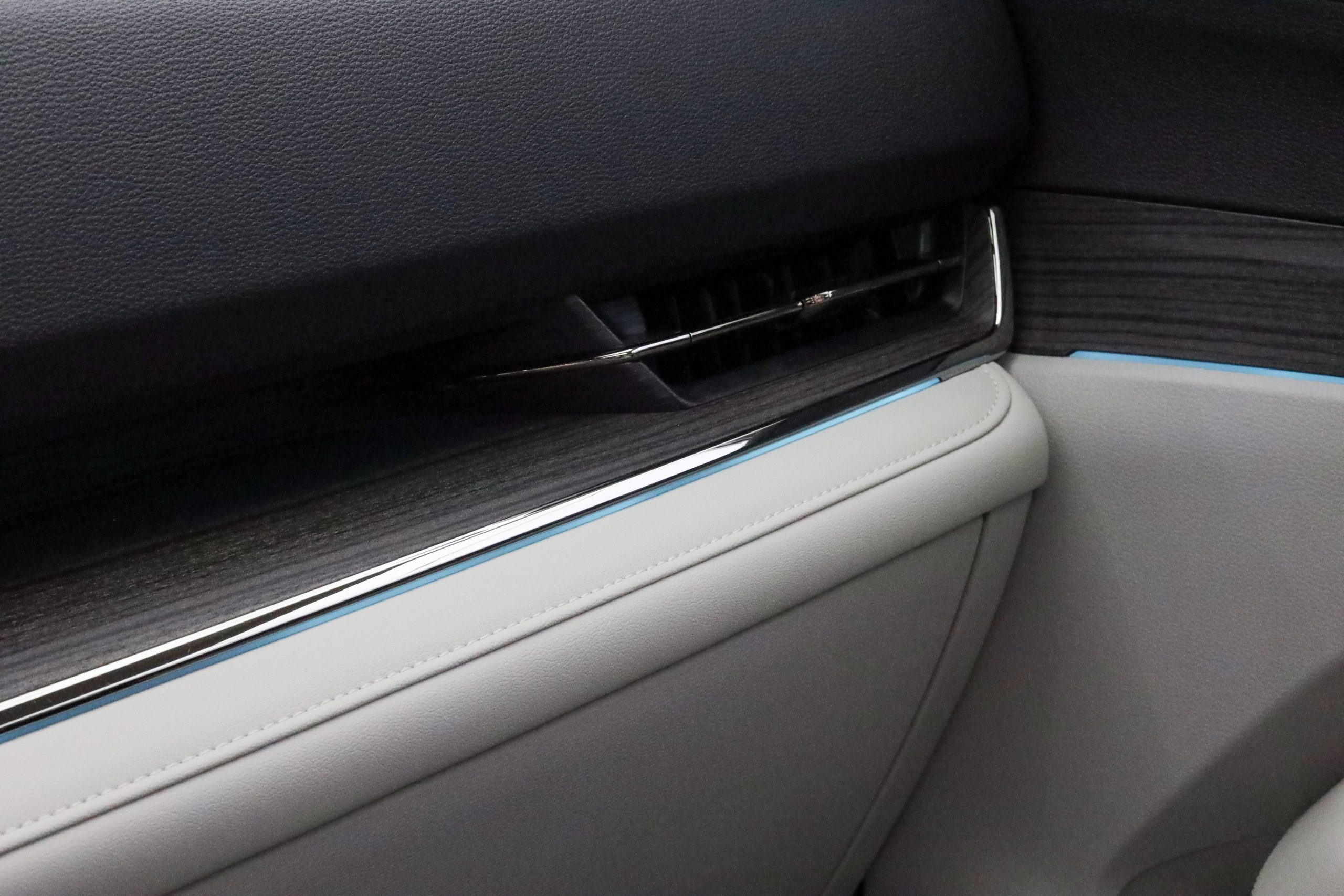 تتزين المقصورة بإضاءة محيطية قابلة للتعديل، ولمسات من الكروم اللامع على لوحة القيادة والأبواب، مما يمنحها طابعًا فاخرًا. عجلة القيادة متعددة الوظائف مغطاة بالجلد وتحتوي على أزرار للتحكم بالنظام الصوتي والهاتف وأوامر القيادة.