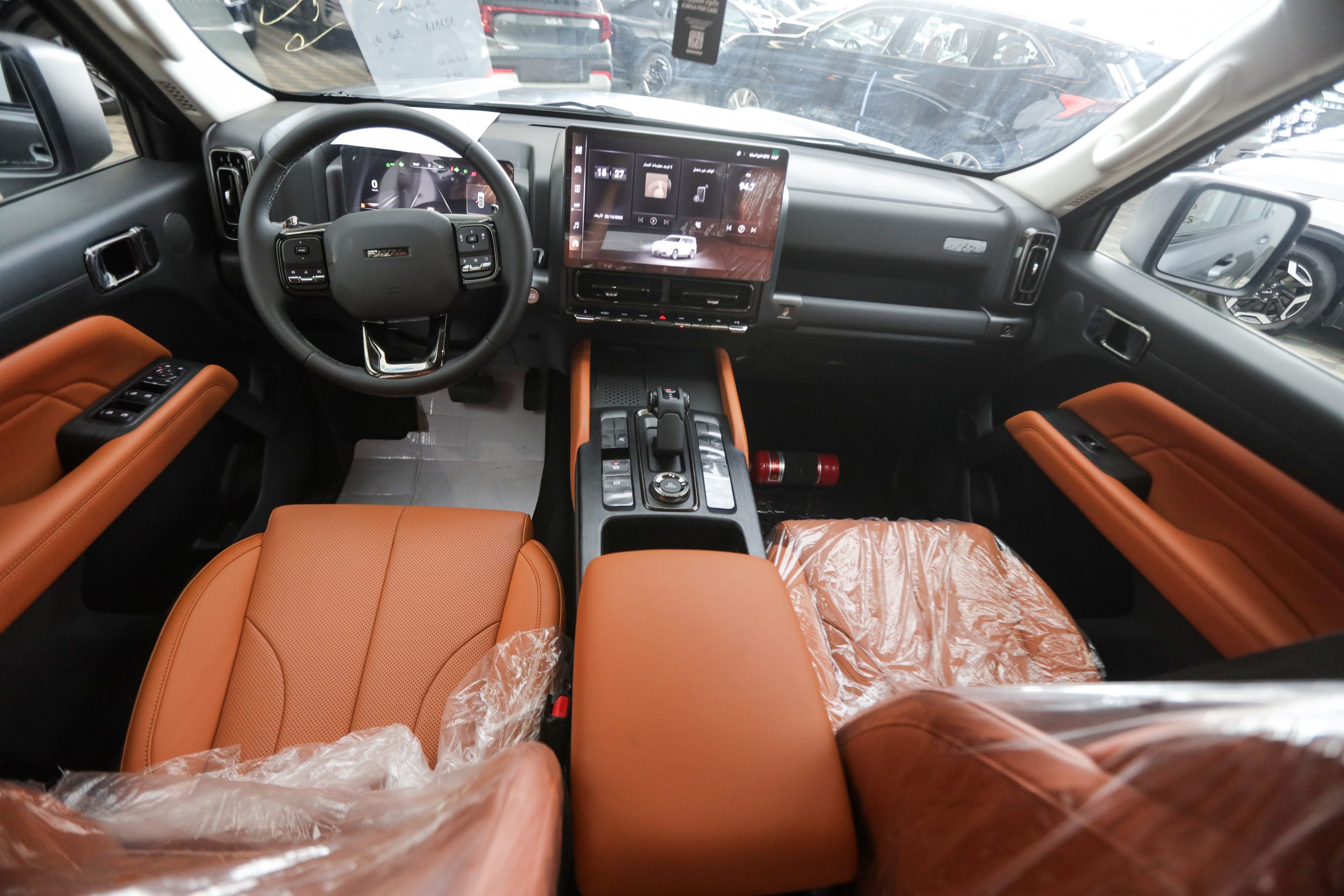 - الخامات الداخلية محسنة، مع لمسات جلدية، درزات واضحة، سطح مركزي أنيق وتصميم يراعي الرحابة.