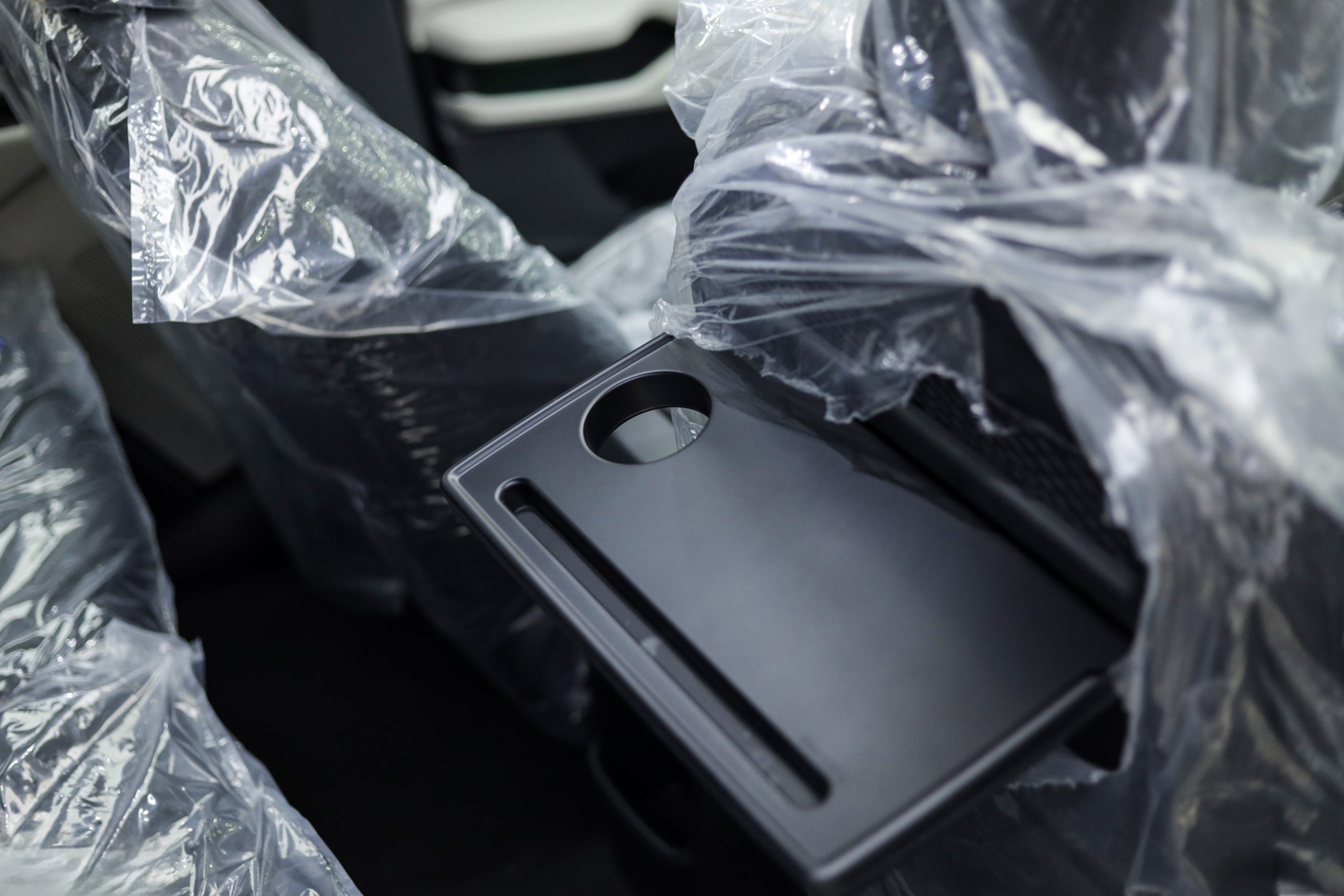 طاولات قابلة للطي مع حامل للأكواب للركاب في الصف الثاني.