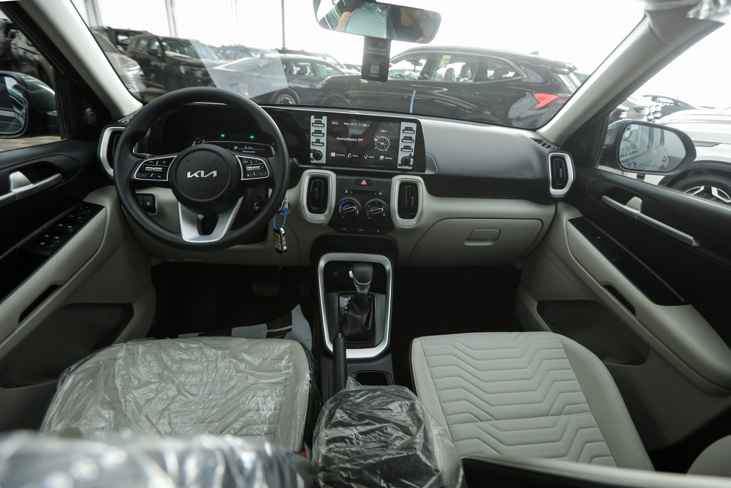 من الداخل، تظهر كيا سونيت 2026 اهتماماً بالتفاصيل رغم تصنيفها كسيارة اقتصادية. المقصورة تتسع لخمسة ركاب بشكل مريح، مع تصميم عصري للوحة العدادات واستخدام خامات بلاستيكية عالية الجودة في الفئة القياسية.
